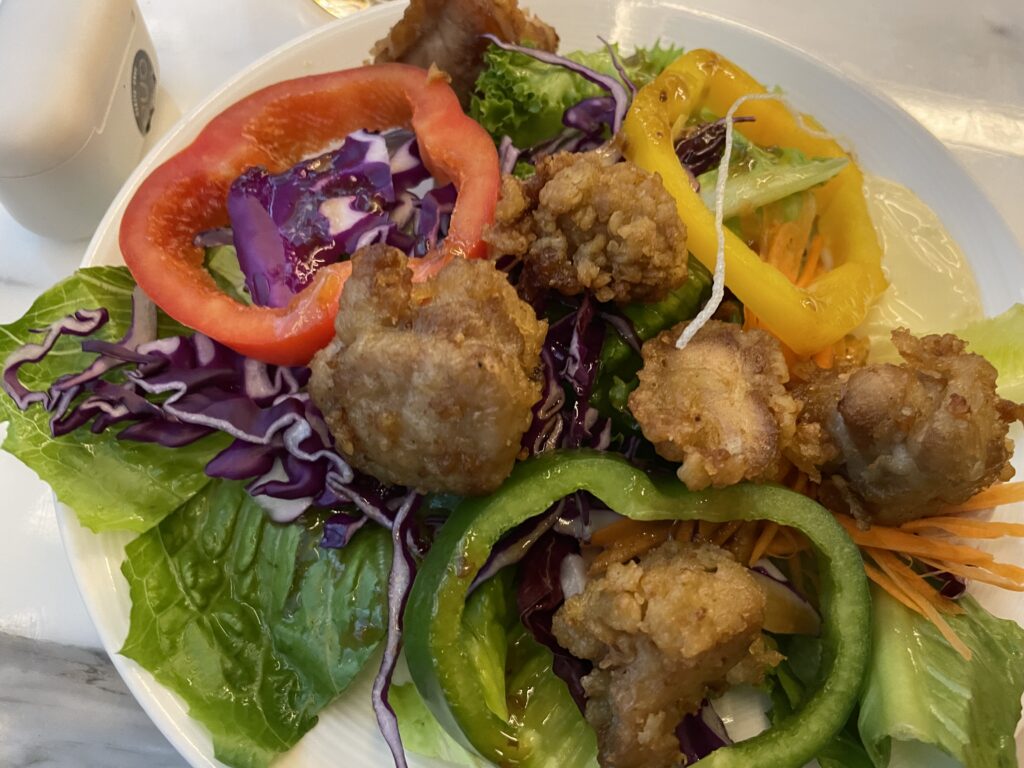 唐揚げ系とフレッシュサラダの組み合わせ、想像力で勝負となります。