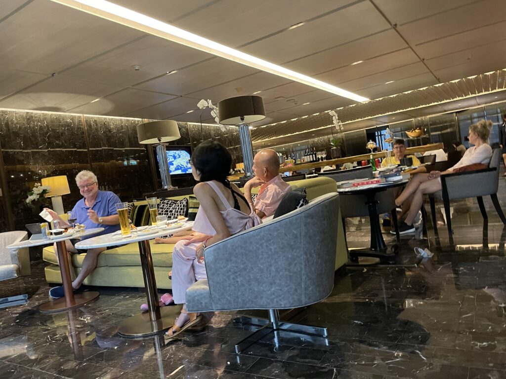 エグゼクティブラウンジの時間帯は、一番盛り上がるイブニングカクテルタイム。