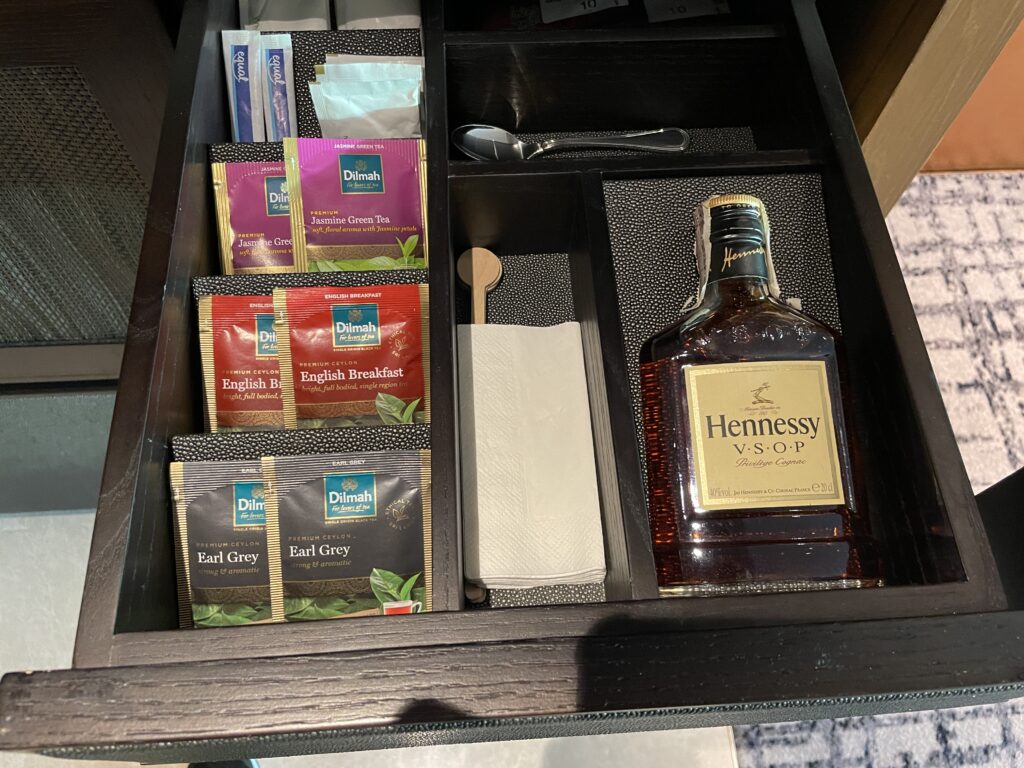 自由に飲むことが出来る紅茶類とブランデーVSOP