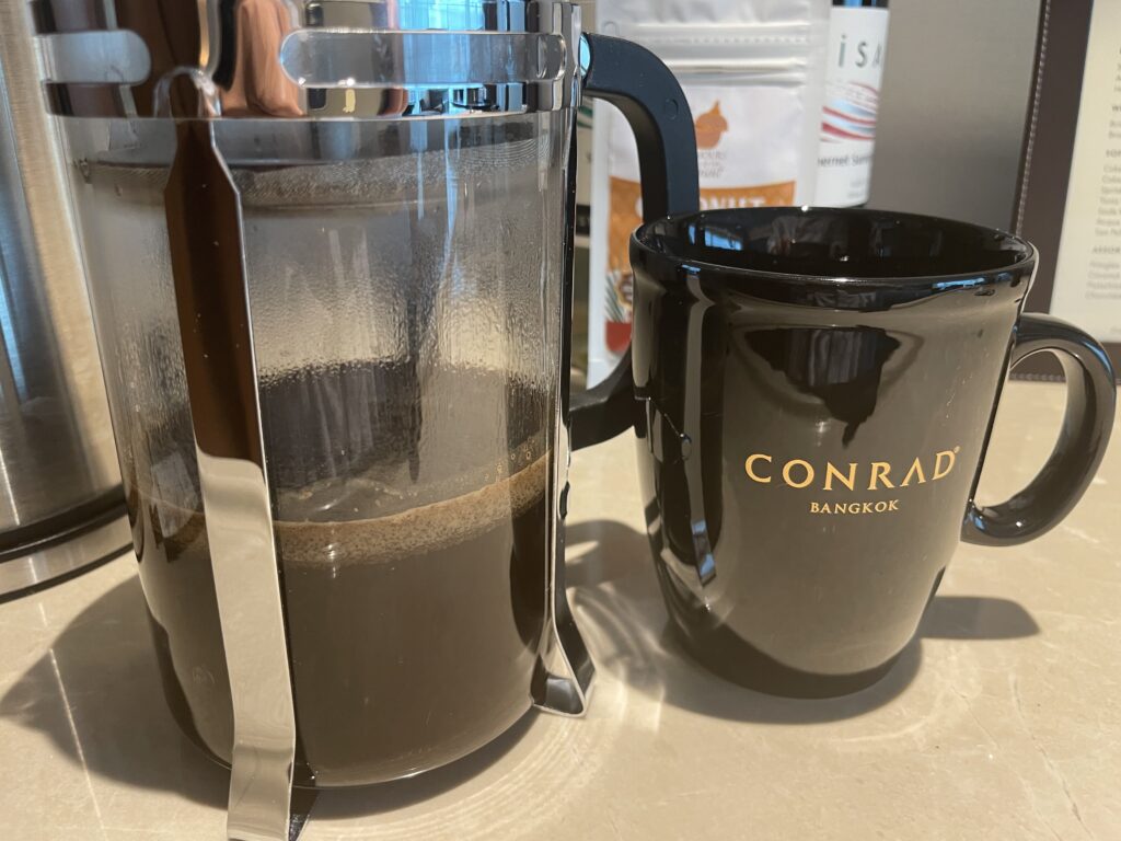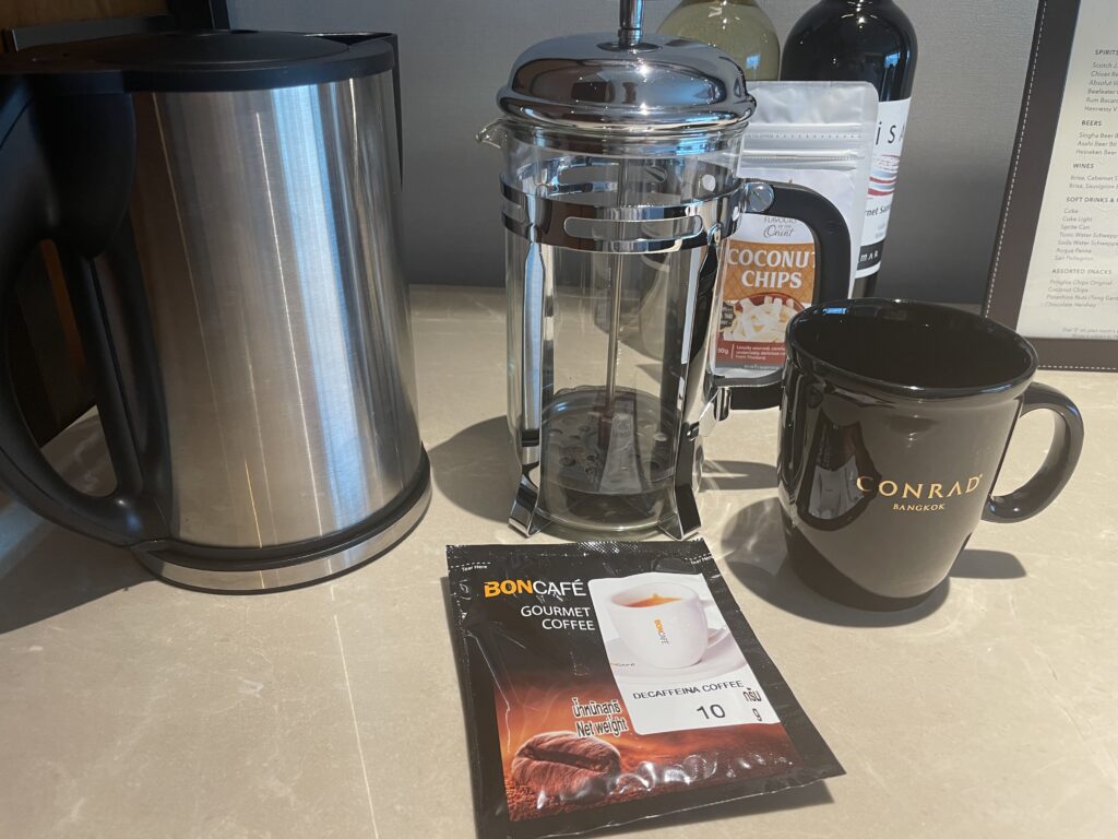 部屋の中にコーヒーの良い香り、バンコクの街並みを見ながらいただきました。