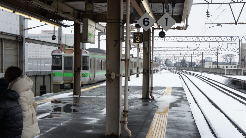 見慣れない電車の名前が書いてあり北海道に来たって感じがします!