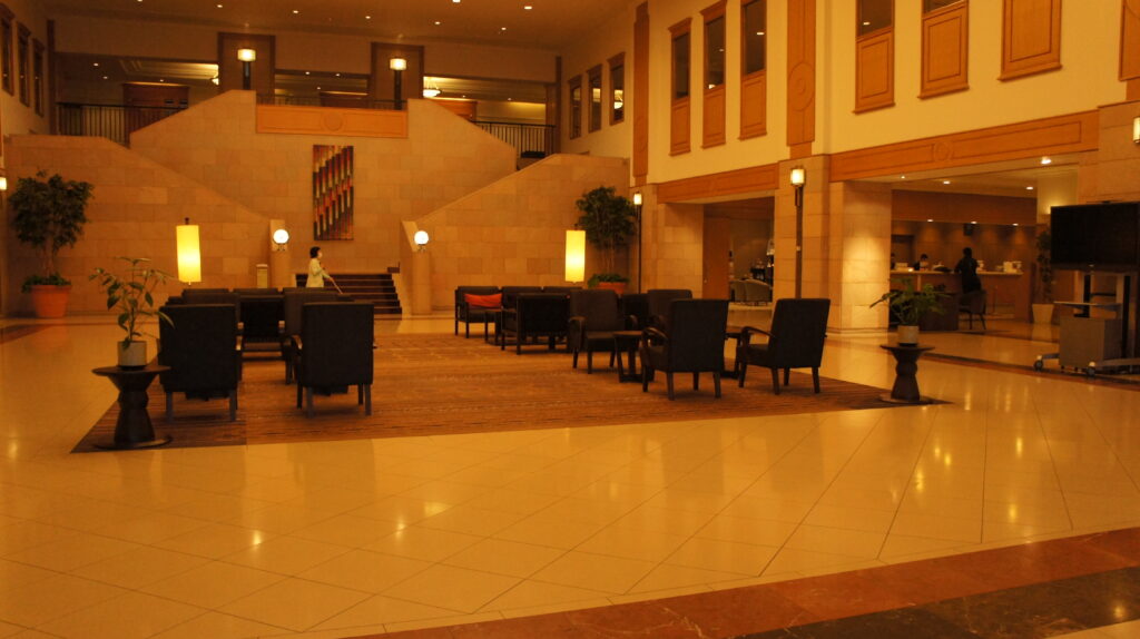 ホテルのエントランスです。この日、人が少なかったようでガラガラでした。
