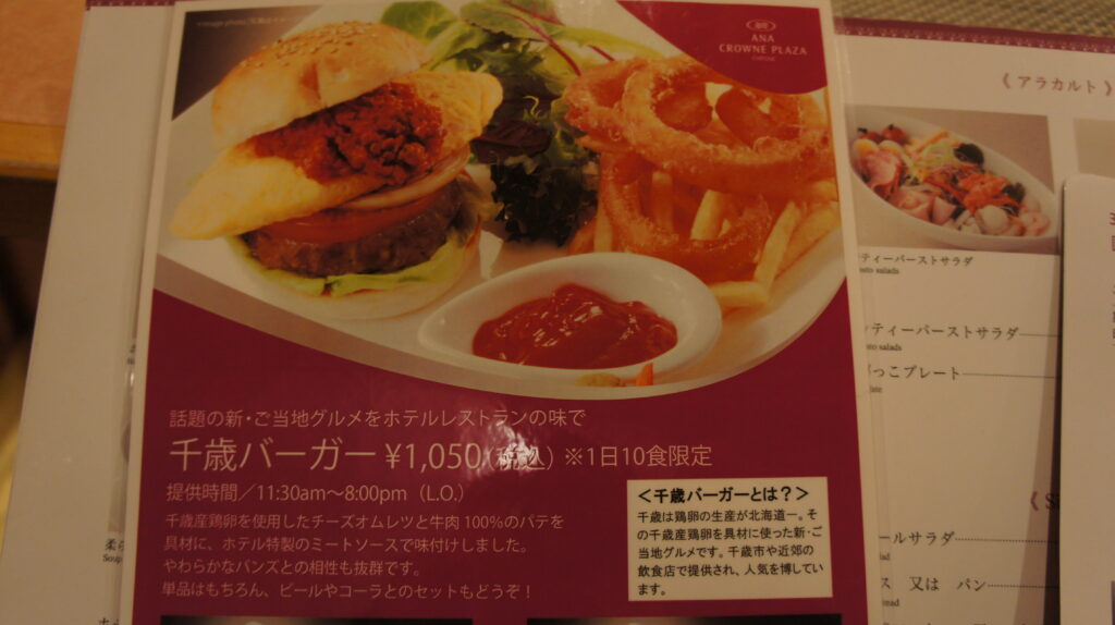 千歳バーガーなるものもあります。チーズオムレツを挟んだ感じですね。1日10食限定!