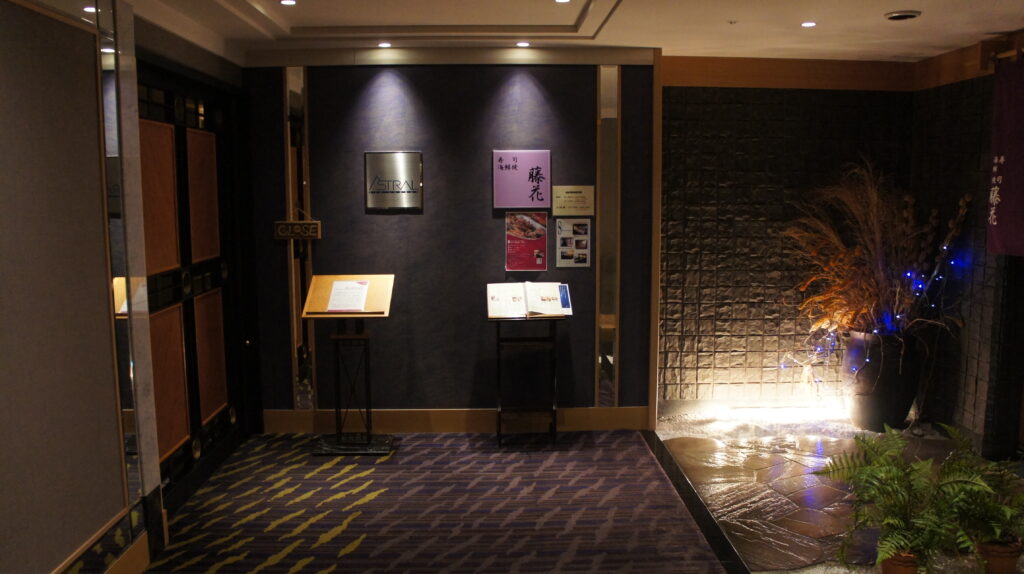 建物最上階11階にバーラウンジ「アストラル」はあります。隣には日本料理「藤花」お寿司が食べられるようです。