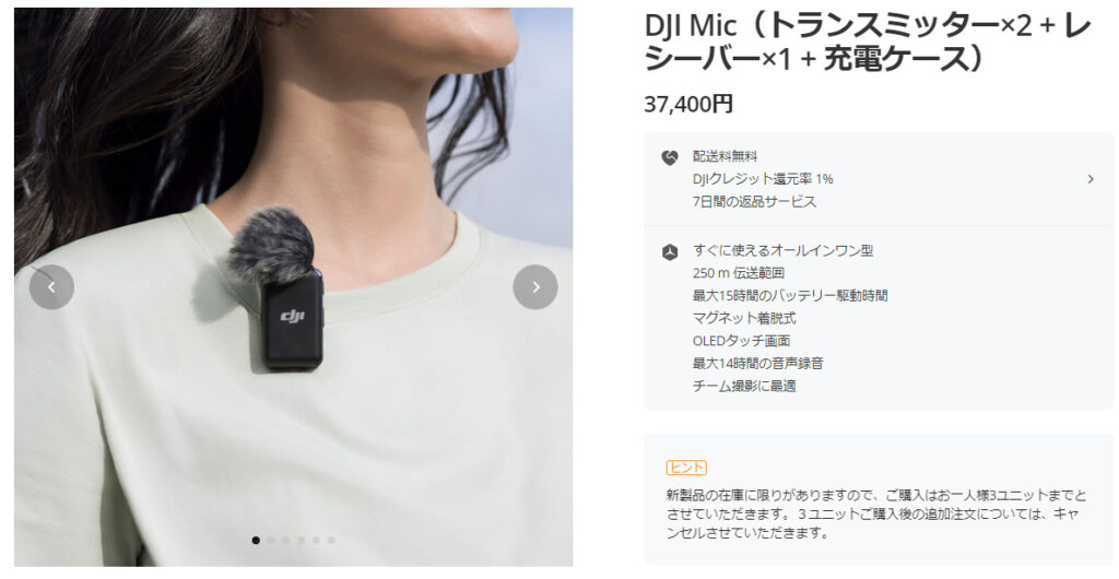 そこでマイクを探していたのですが、ワイヤレスですぐ繋がるものを探していてこのDJIさんのものになりました。