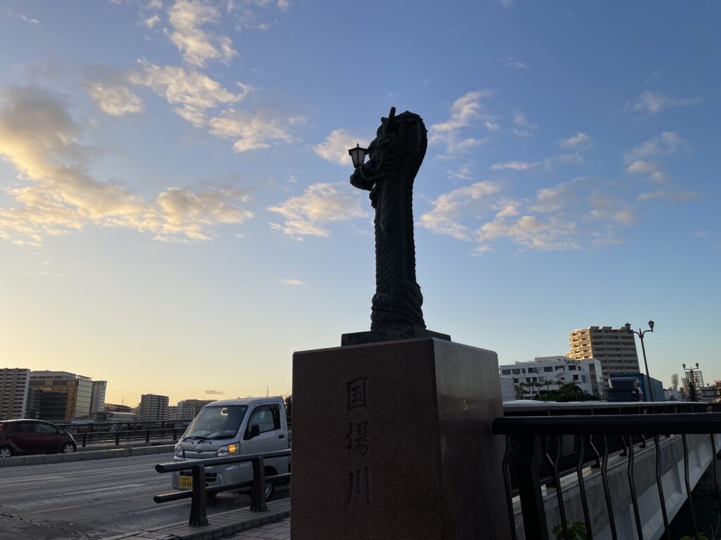 奥武山公園向かうと途中に「国場川」があります。しっかりした龍のモニュメントがありました。