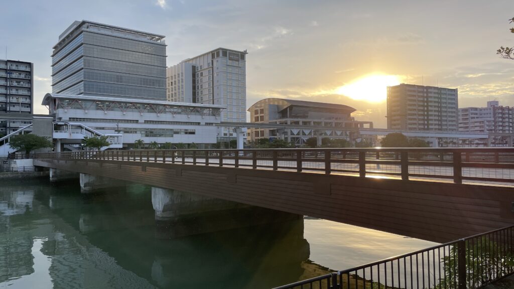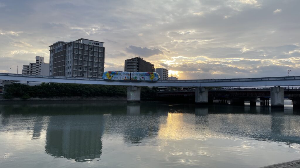 風のない日ですと、川に移ったモノレールがウユニ塩湖みたいにきれいに映るのではないかと思います。