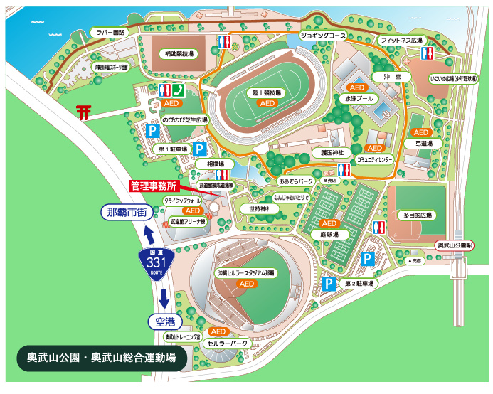 奥武山公園内には、セルラースタジアムをはじめ、県立武道館があったり、護国神社があったり陸上競技場があったりと総合的な公園です。