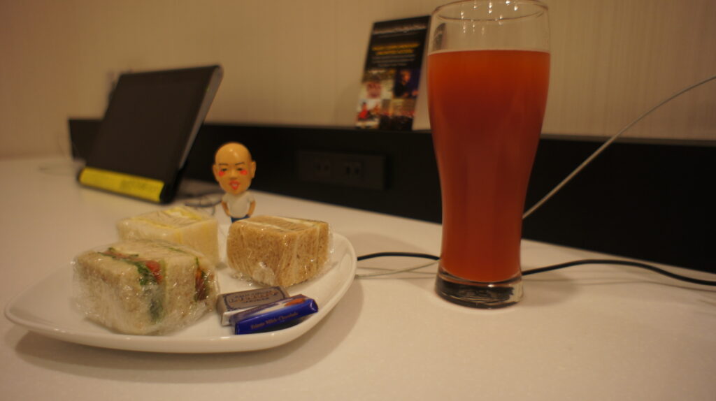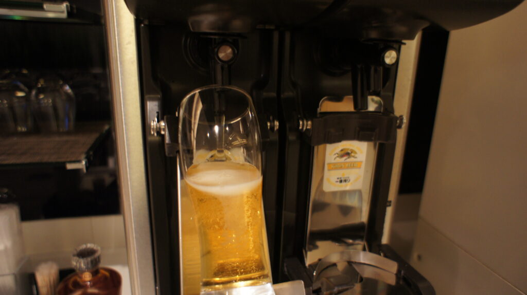 これが出来るのもANAラウンジです。ビールとトマトジュースが準備されているので。