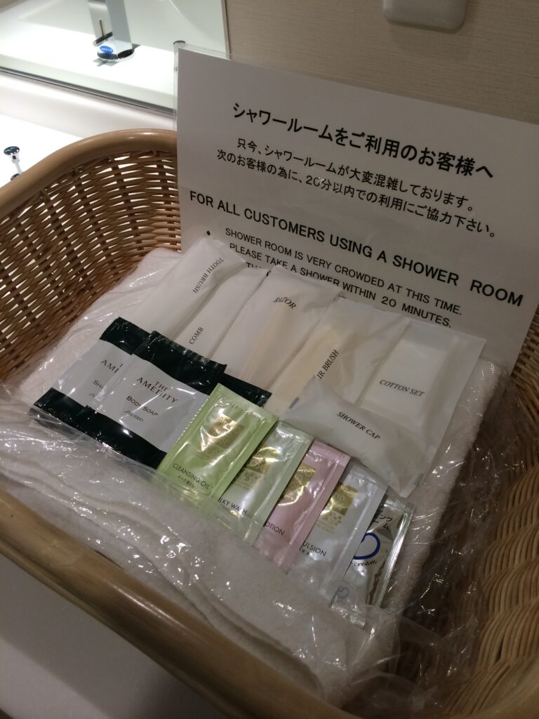 シャワールームは5部屋くらいはあるようですが、利用する方が多いので20分以内と制限があるようです。アメニティーやタオルももちろんあります。