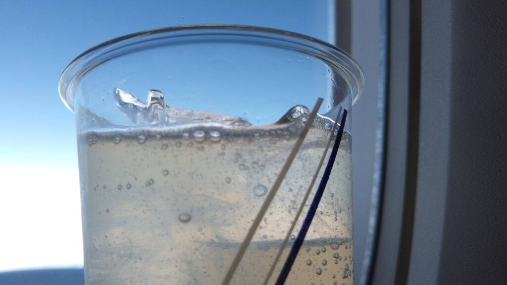 青い空に輝く炭酸の泡、朝からのアルコールは最高ですね。