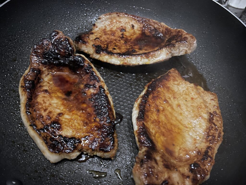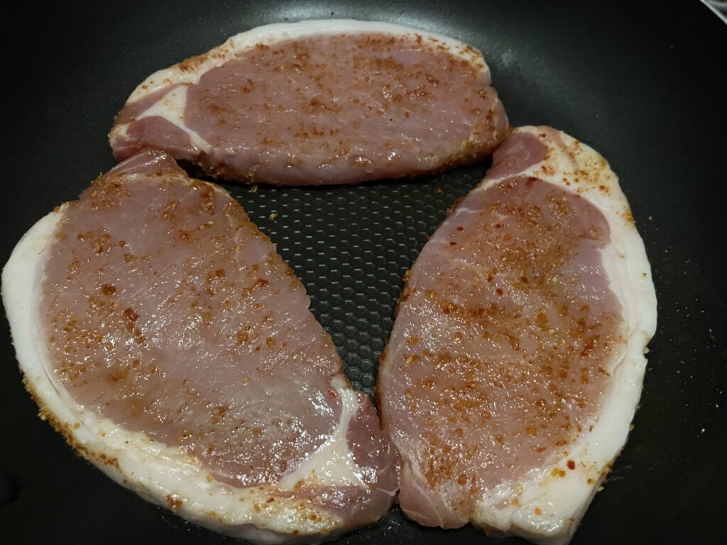 豚さんのロース肉を準備します。今回は、3枚です。