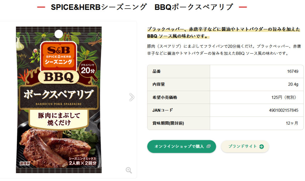 S&Bヱスビー食品HPより引用