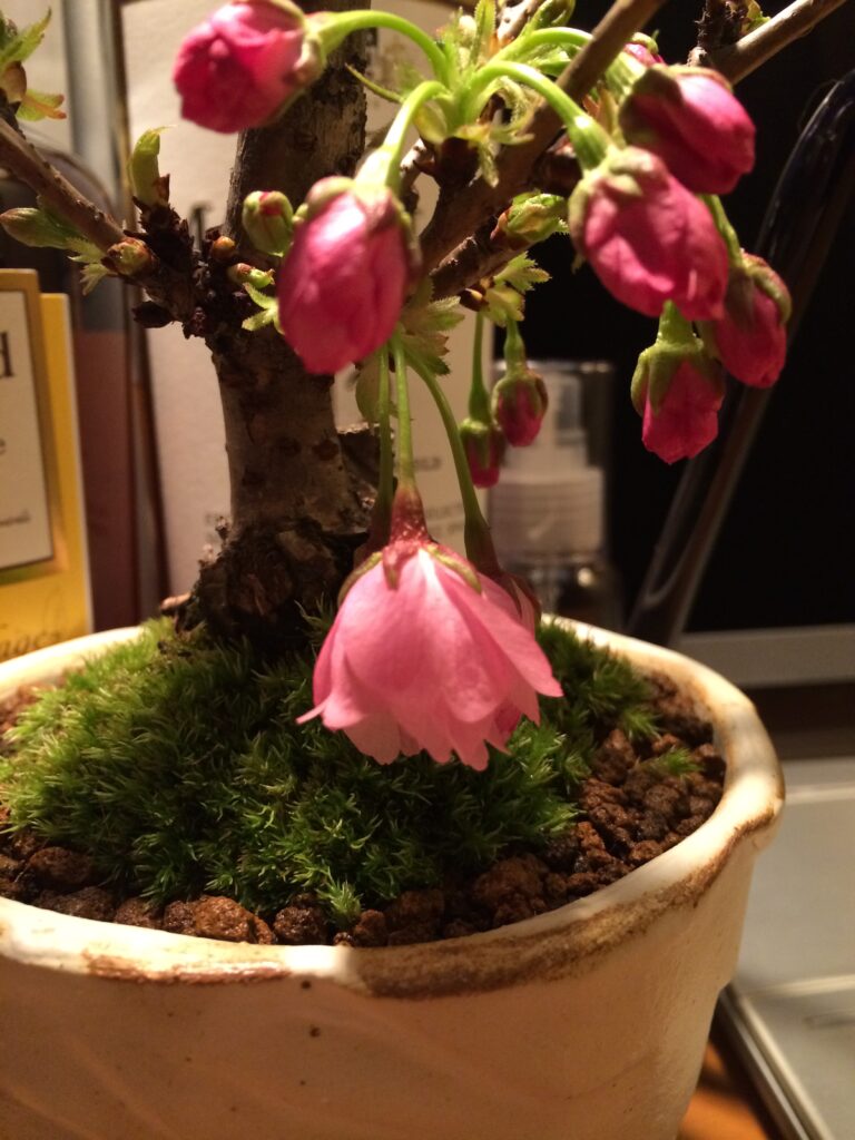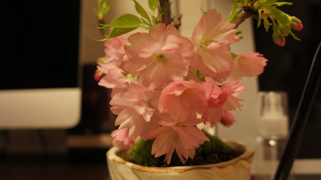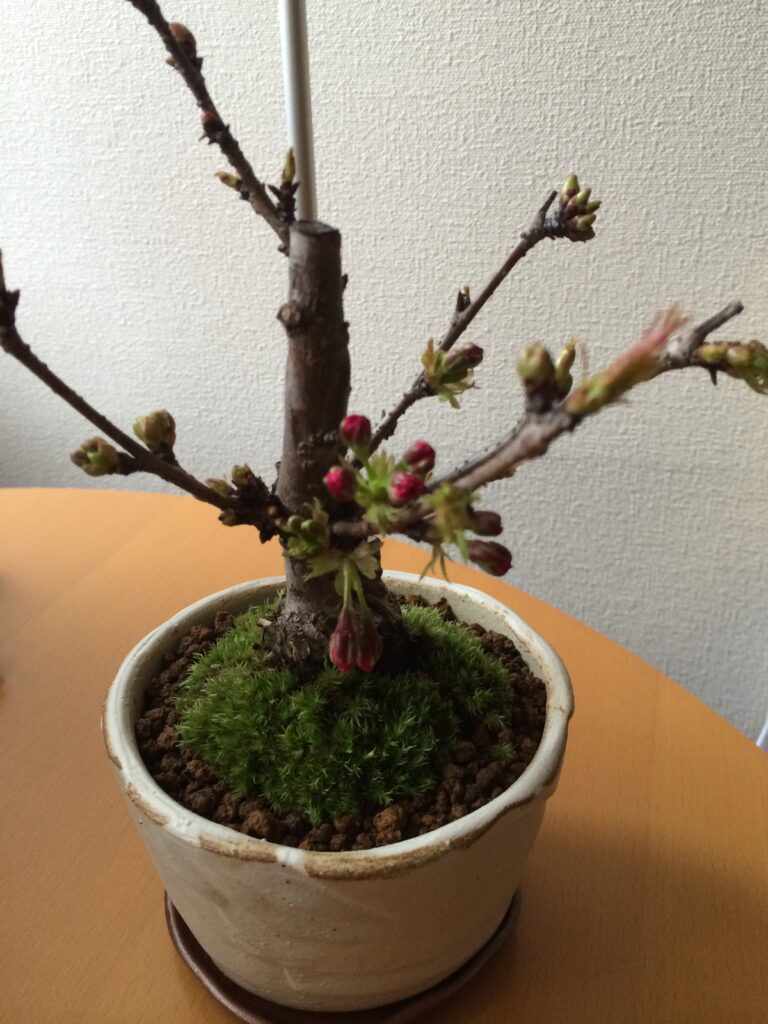 さくらの木の盆栽を購入して、見る見るうちにつぼみから花が咲いていくので、毎日見るのがたのしみになります。
