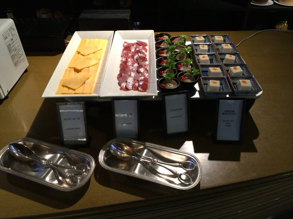 イブニングタイムには、軽食が準備されます。アルコールもあるので少しお腹に入れてからレストランなどのダイニングに向かうという事ですね。