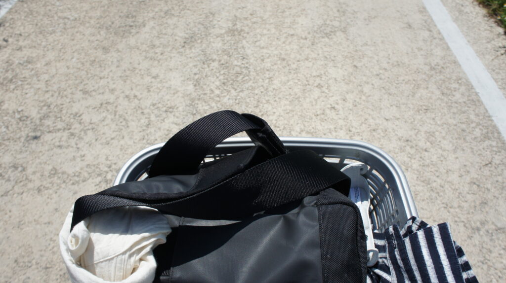 荷物は前のカゴに入れて行きます!