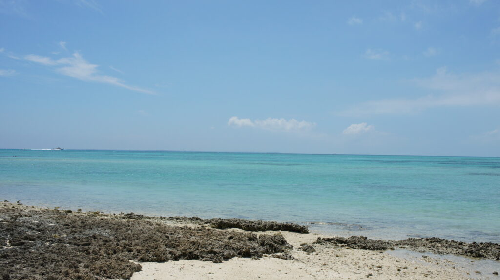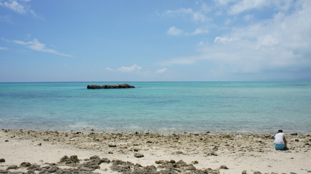 砂部分もありますが、サンゴでゴツゴツしているので、ビーチサンダルなどは履いておく方が良いですね。