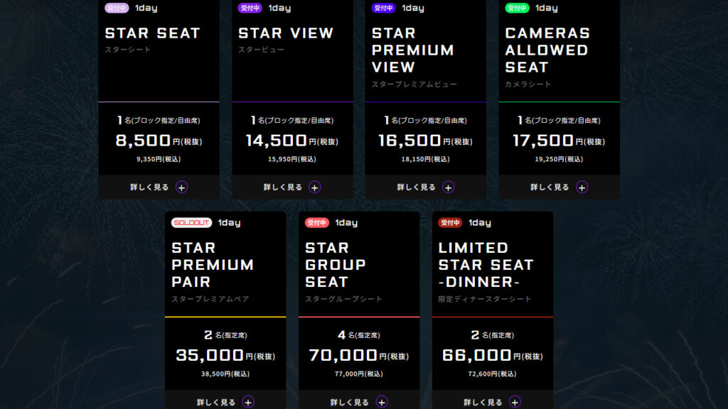 アメリカンエキスプレスの席の参加費は1組2名様につき45,000円(税込)です!