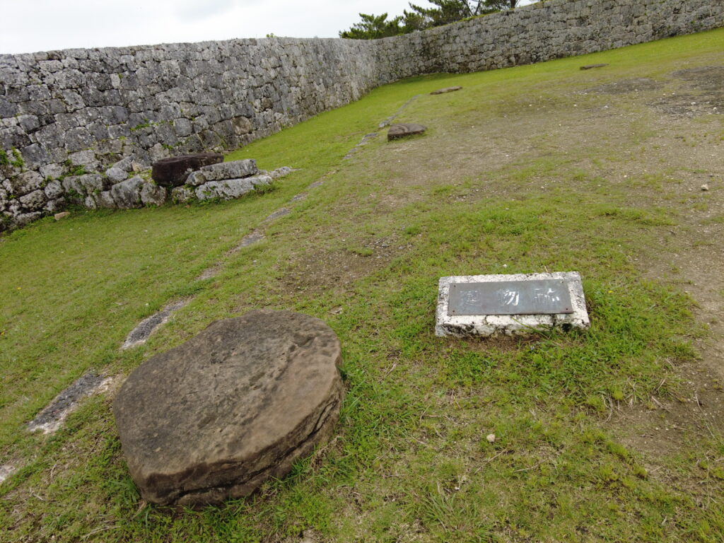 城跡の入り口(帰りに発見)昔、使っていたサトウキビを絞る道具ですかね。