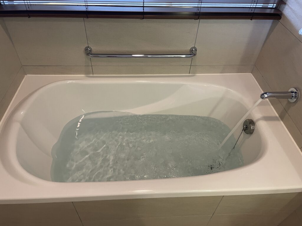 バスタブは深めですが、広さは(長さ)はそうでもないですが、横に広めなのでゆったりです!