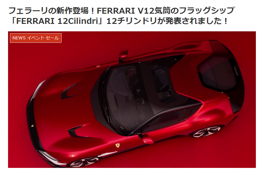 以前、このサイトでご紹介した「FERRARI V12気筒のフラッグシップ FERRARI 12Cilindri」ですが