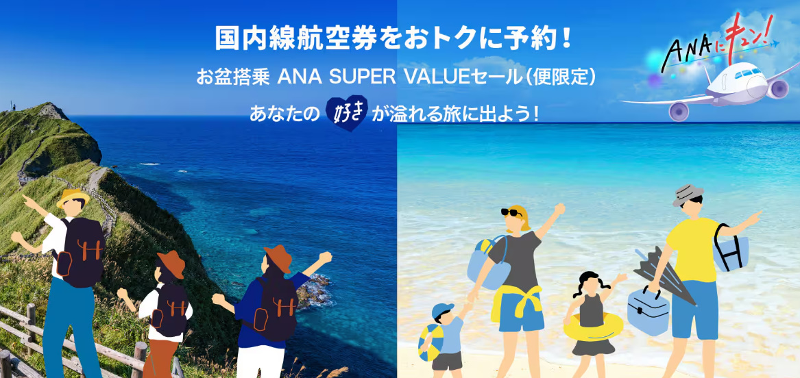 - ANAスーパーバリューセール運賃が対象です。販売座席数には限りがあります。