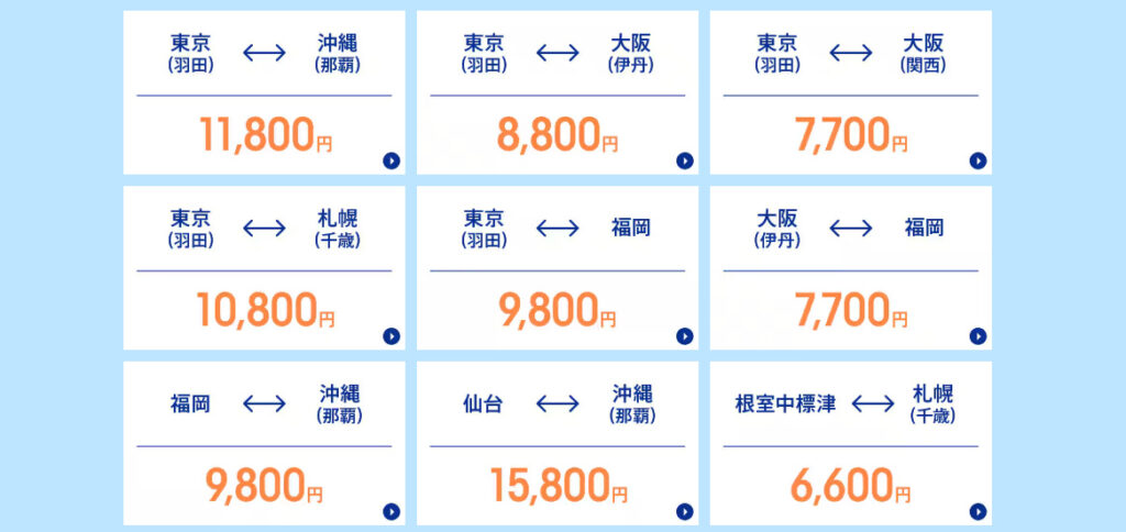 主なお得な航空券の路線