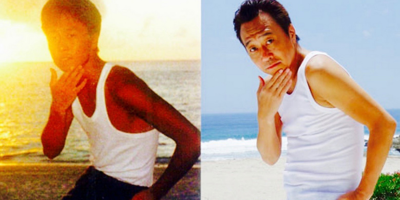 こちらは、30年前の写真と同じポーズを取った三村マサカズさん!