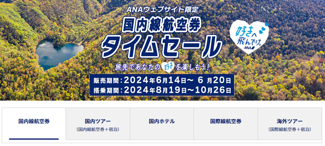 ANAのWEB限定!国内線タイムセール!始まりますよ~!6月14日~20日までの5日間 国内線 沖縄-宮古が5,000円から マイルとクレジットカード X Facebook はてブ LINE コピー 2024.06.142025.09.30 画像:ANA 国内の主要路線が割引価格でお得ですよ! WEB限定の国際線タイムセールが6月14日0:00~6月20日まで開催中です。 座席数に限りがありますので、完全早い者勝ちです。 安心の翼、ANAの翼で安心のフライトを 詳しくは公式サイトよりご確認、ご検討ください! ANAの国内線タイムセールの公式サイト! PR スポンサーリンク 関連記事: ANA 全日空|DHC8-Q400型機「ANA Future Promise」特別塗装機が就航!環境を考える次世代デザイン マイルが使える貯まる!「ANAのショッピング A-styleでマイルを使って商品を購入してみた!」マイル失効 ANAの厳選商品を購入! 成田空港 ANAアライバルラウンジを利用してみた!国際線ラウンジ並みの充実内容をご紹介いたします。このラウンジ住めます! ANA 全日空 国際線航空券タイムセール5月10日0:00~16日まで スーパーお得です!