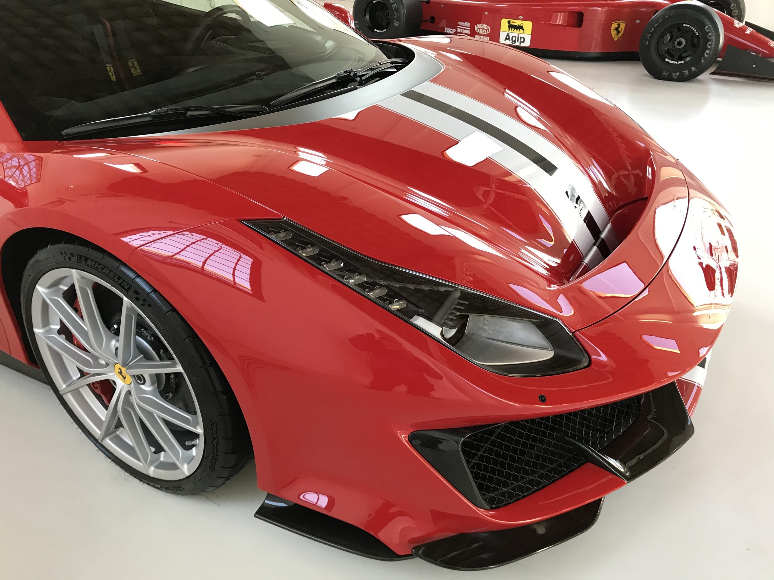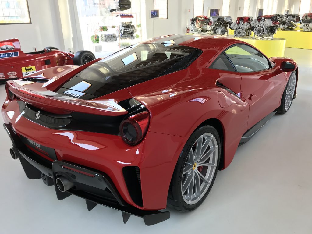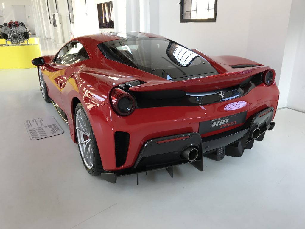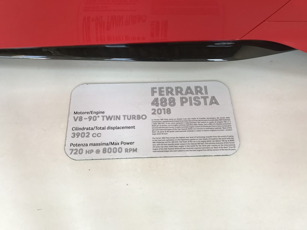 イタリアのモデナのエンツォ・フェラーリ博物館で発見しました!この博物館はオールドカーから現在までフェラーリを見ることが出来る博物館です。が別エリアで488PISTAが展示されていたので思わず見入ってしまいました!