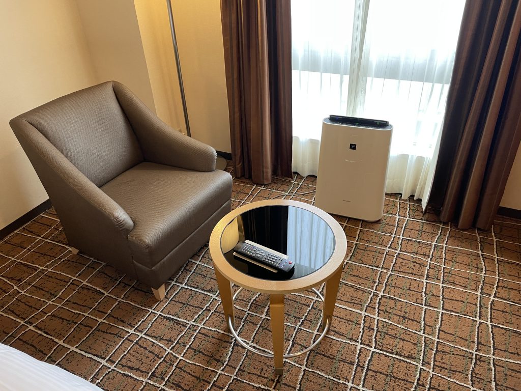 ソファー(一人掛け用)が1つありました。2人の場合は1人はソファーではなく、イスを利用するしかないですね。