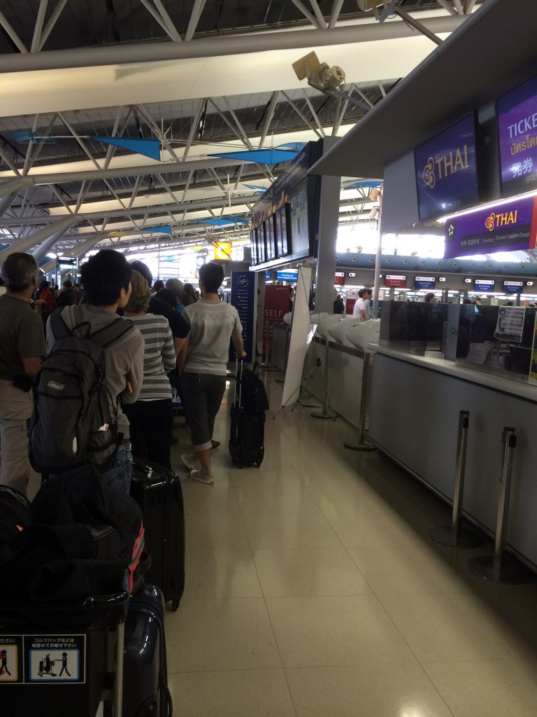 関空でもこの行列は、タイ国際航空のカウンター周りだけでした。早めに来て良かった!