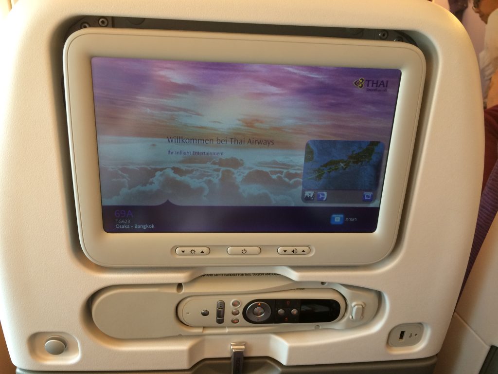 こんなにあるのは見たことがない!十分なシートピッチと適度な画面やUSBなども装備されているので関空からスワンナプーム国際空港までの5時間30分くらいも快適に過ごせそうです。