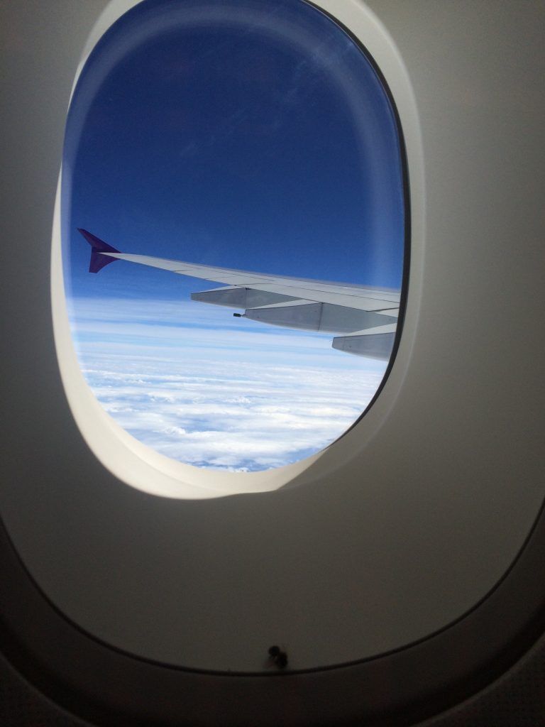 翼より後方の席でしたので、翼を見ることができます。窓も結構遠目に感じます!