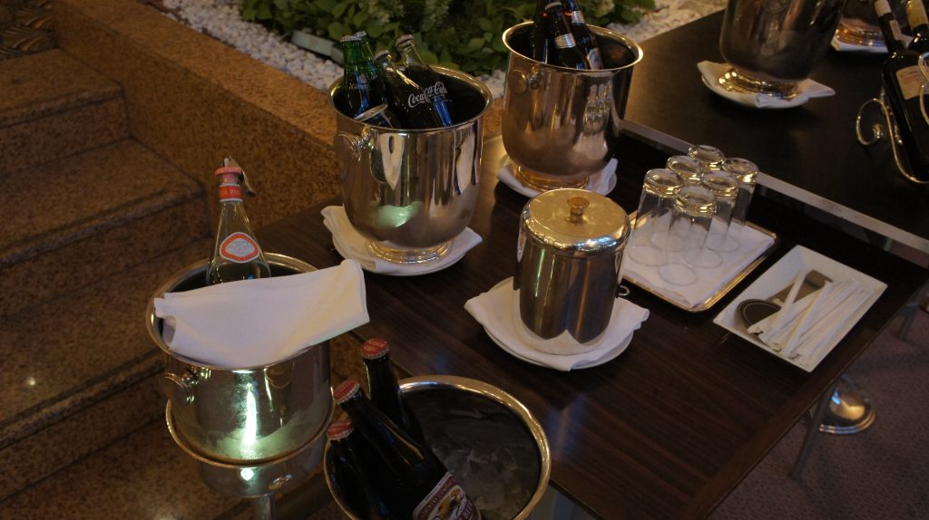 ドリンク置き場は簡易的な感じですね。シャンパンクーラーに各種ドリンクが入っていました。
