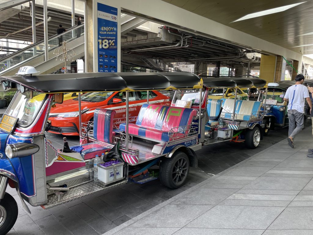 多分道側(川側と反対側)が正面になると思います(思っています!)入口にはタクシーやトゥクトゥクが行列です。