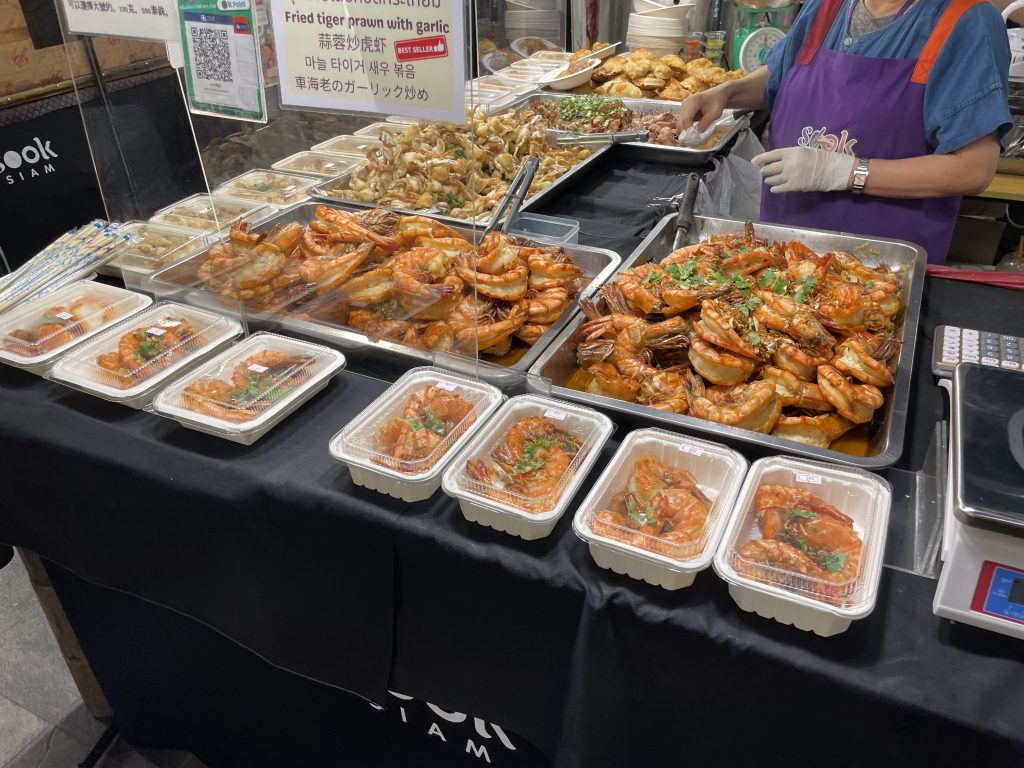 エビのガーリック炒め!エビも大きくて美味しそう!各国の言葉で表示してくれているのも嬉しいですね。タイ語だけだと分からないですからね!