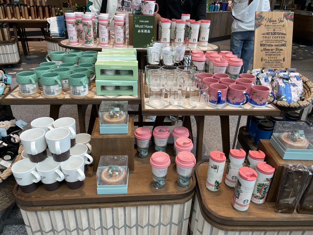 タンブラーやマグカップをはじめ、大人気のアイテムなのでここに来た方は何かしら購入していくみたいですね。
