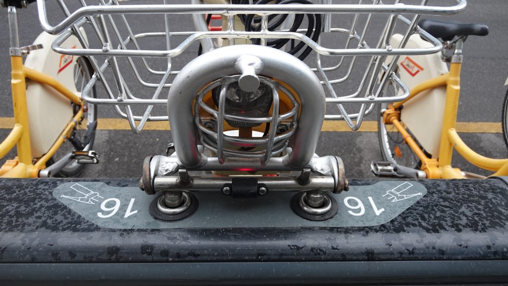 結構、自転車が重くて「ガチャ」っとするのが大変なのですが、無事に「ガチャ」っとできました。