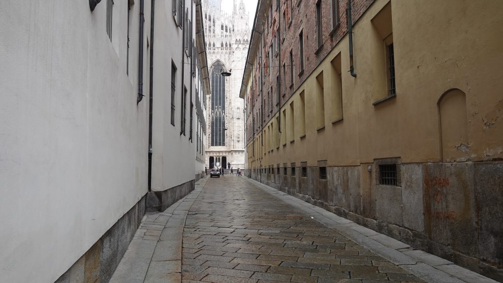 ミラノ大聖堂・ドゥオーモの近くです!石畳が本当に似合う街並みです!
