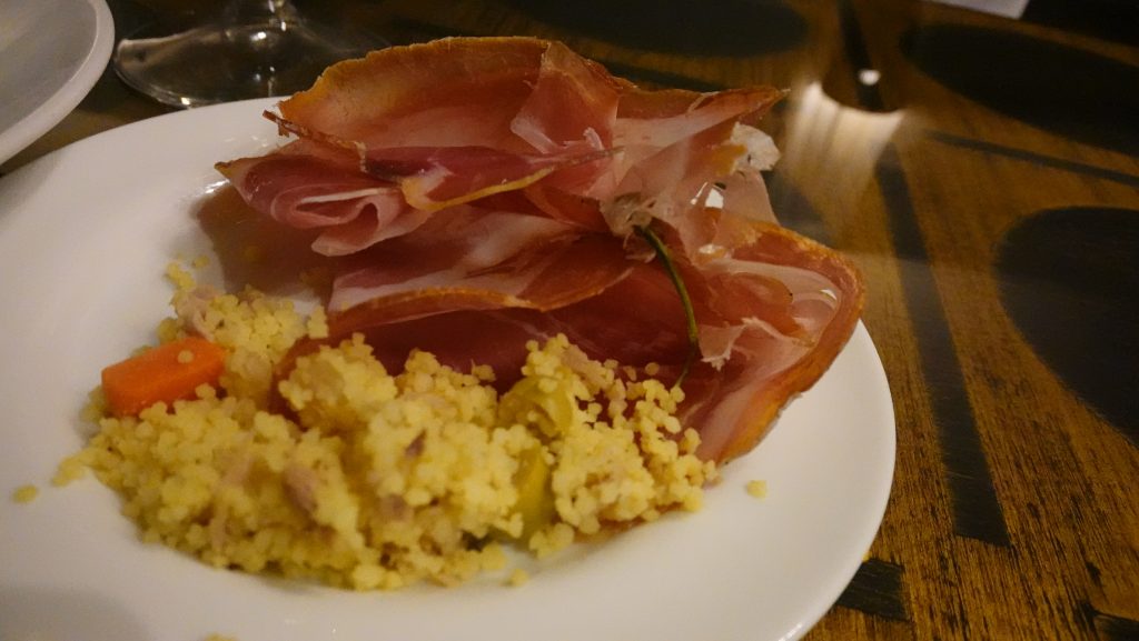 まずは、アミューズとして生ハムとキヌアのサラダをいただきます!