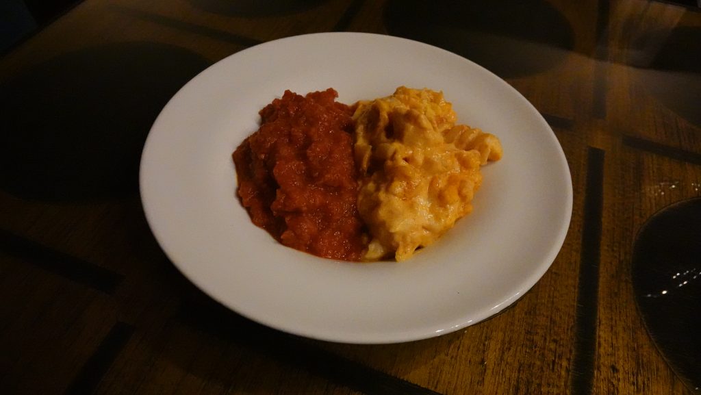 さすがイタリア、パスタがありました。パスタの隣にトマトソースがありました。パスタにトマトソースを加えてから食べるスタイルみたいです。