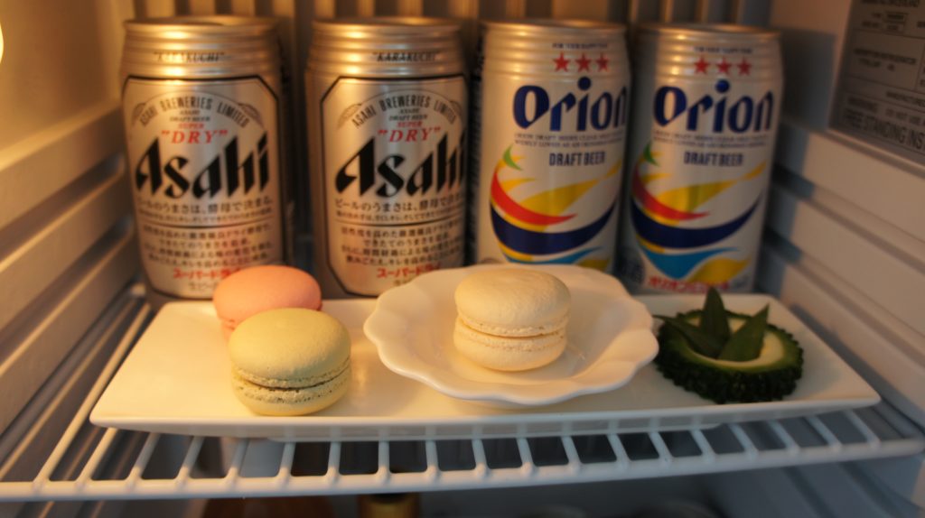 マカロンとゴーヤの何かな??(中のビールは有料です)