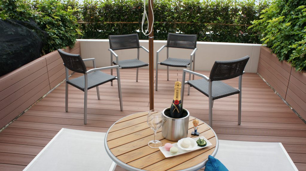 今回は、テラスを中心に楽しみたいので、テラスで大好きなシャンパンを飲んでみようと思います。
