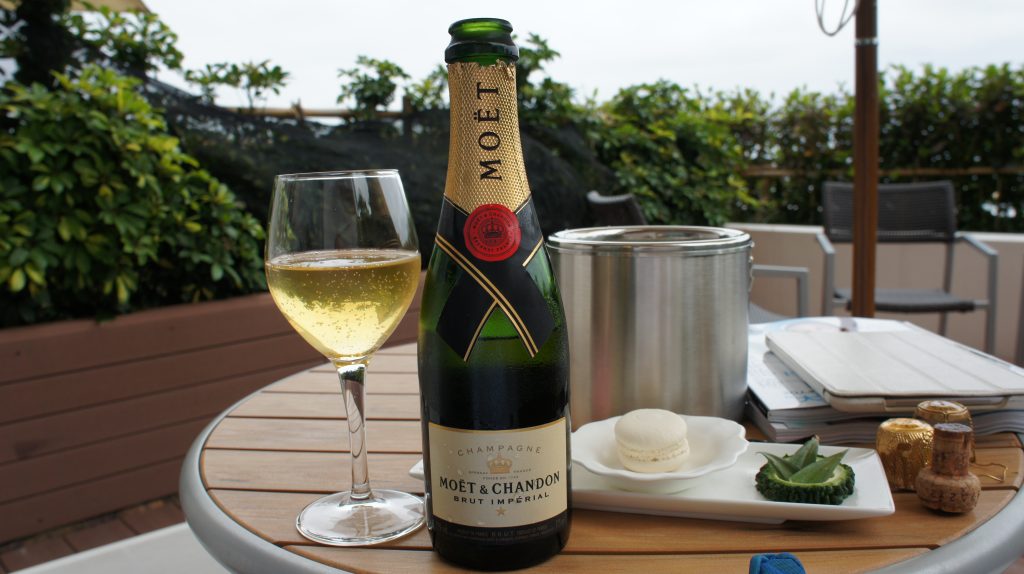 テラスであえてシャンパンなんか飲まなくても、エグゼクティブラウンジに行けばモエシャンドンではありませんが、スパークリングワインがあるので十分かと思います。
