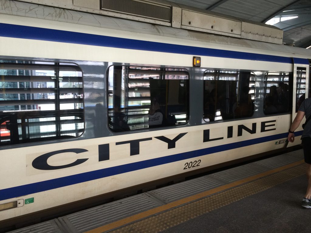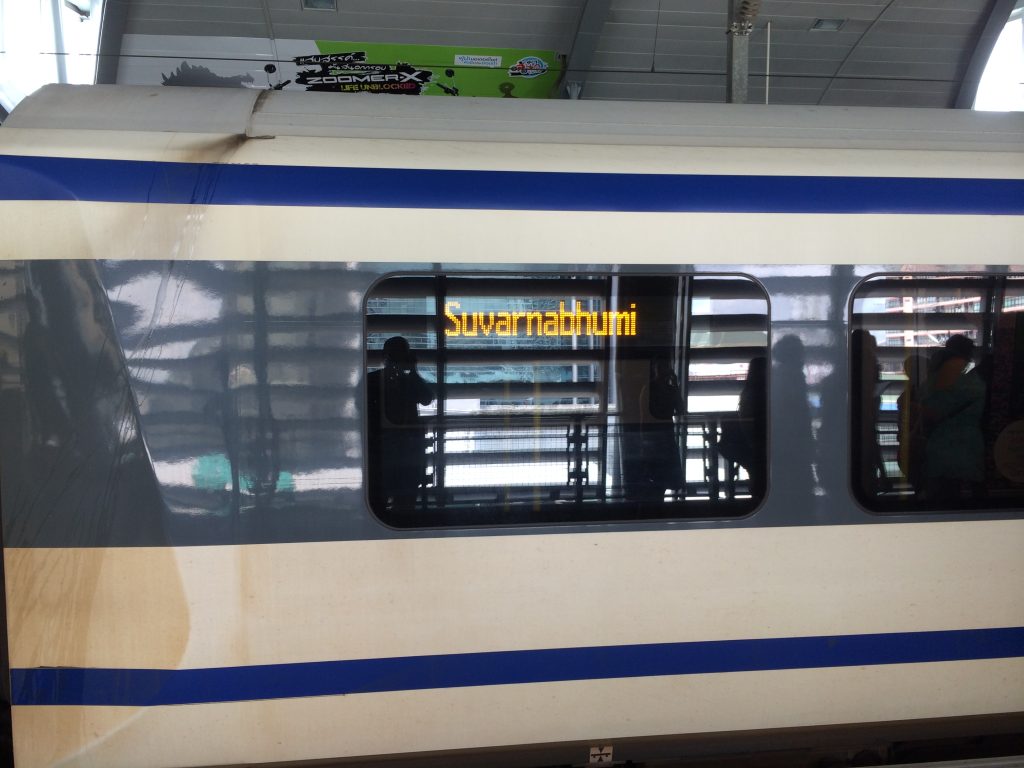 電車が到着!外国で初めての電車に乗り込みます!スワンナプーム国際空港から約30分くらいで市内へ到着するようです!