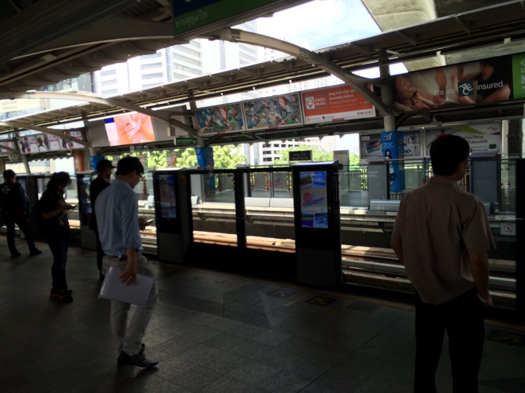 スカイトレイン スワンナプーム駅に到着です。市内の拠点の終点の駅「パヤタイ」という駅まで向かいます。電車に乗れれば市内へ向かえます。