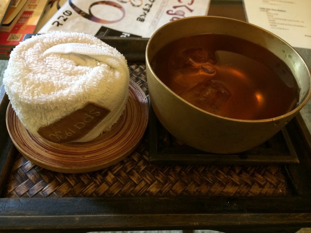 準備のためと、施術?前のためのお茶を出してくれました!タイは暑いので冷たいタオルと飲み物はうれしいですね。