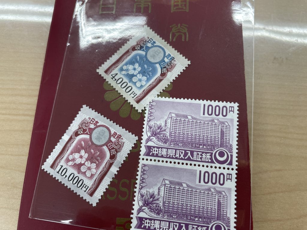 役所の担当課に行ってみると、印紙と県などの収入印紙の2タイプが必要と言われました。