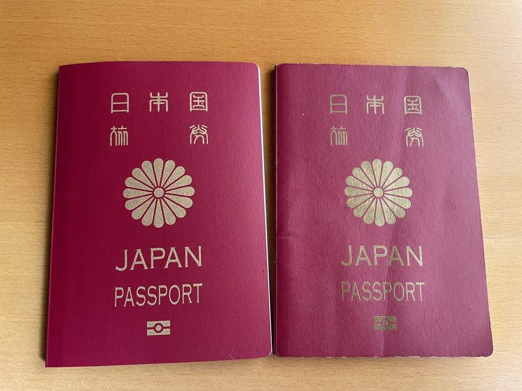 左:新しいパスポート 右:古いパスポート